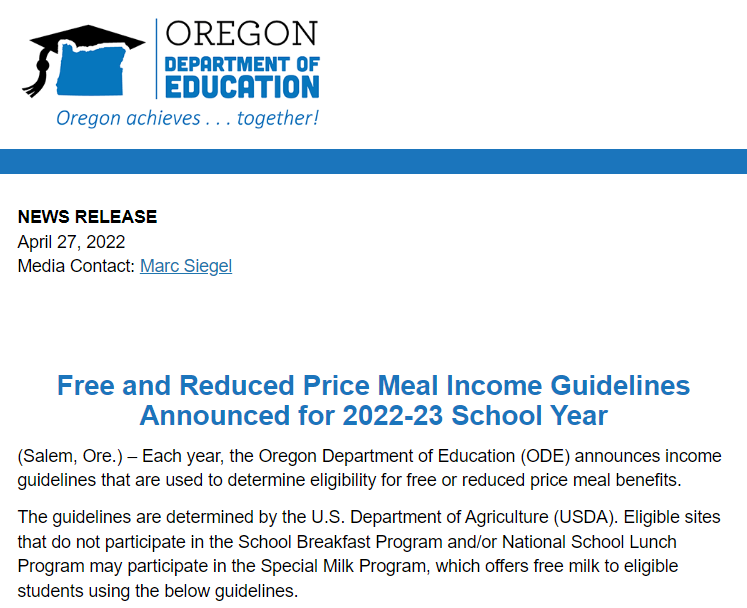 The Oregon Department of Education monitors the program. Start of main content.